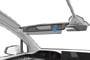 To expose the vanity mirror, lower the visor extender then lower the mirror cover. While the cover is lowered, the mirror is exposed and lights are illuminated.